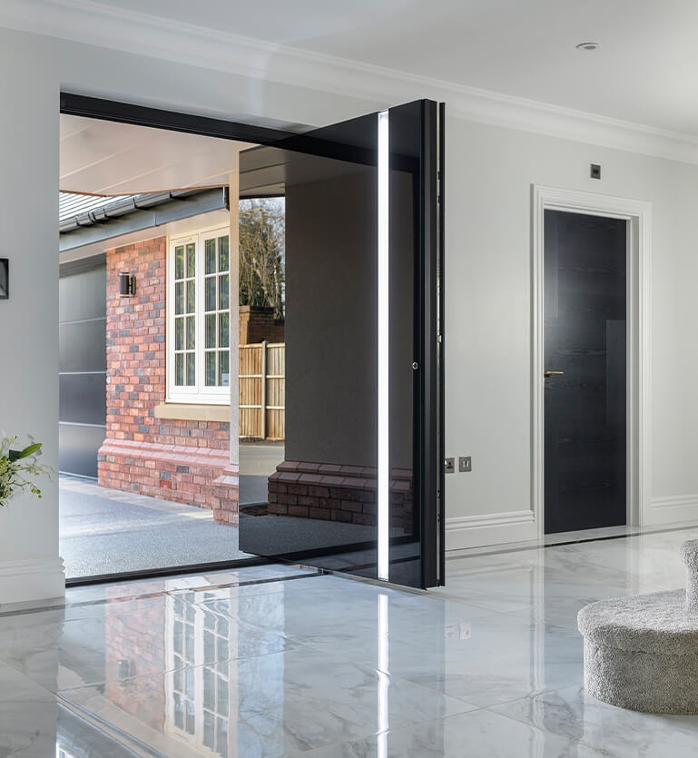 The S-600 Pivot Series is designed to make a dramatic statement. Capable of spanning up to 1500mm wide by 2500mm high, these imposing aluminium doors create a breathtaking focal point for modern homes. Unlike traditional doors with sidelights or double configurations, a single pivot door achieves a cleaner, more contemporary look — commanding presence with effortless style.
